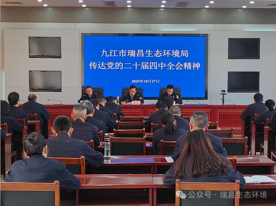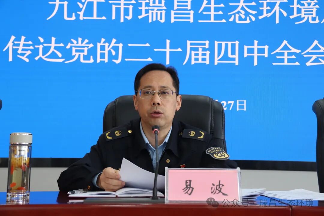 10月27日上午,瑞昌生态环境局召开全体干部职工大会,传达学习党的二十届四中全会精神和全省、九江市、瑞昌市领导干部会议精神,研究贯彻落实意见。局党组书记、局长易波主持会议并讲话。