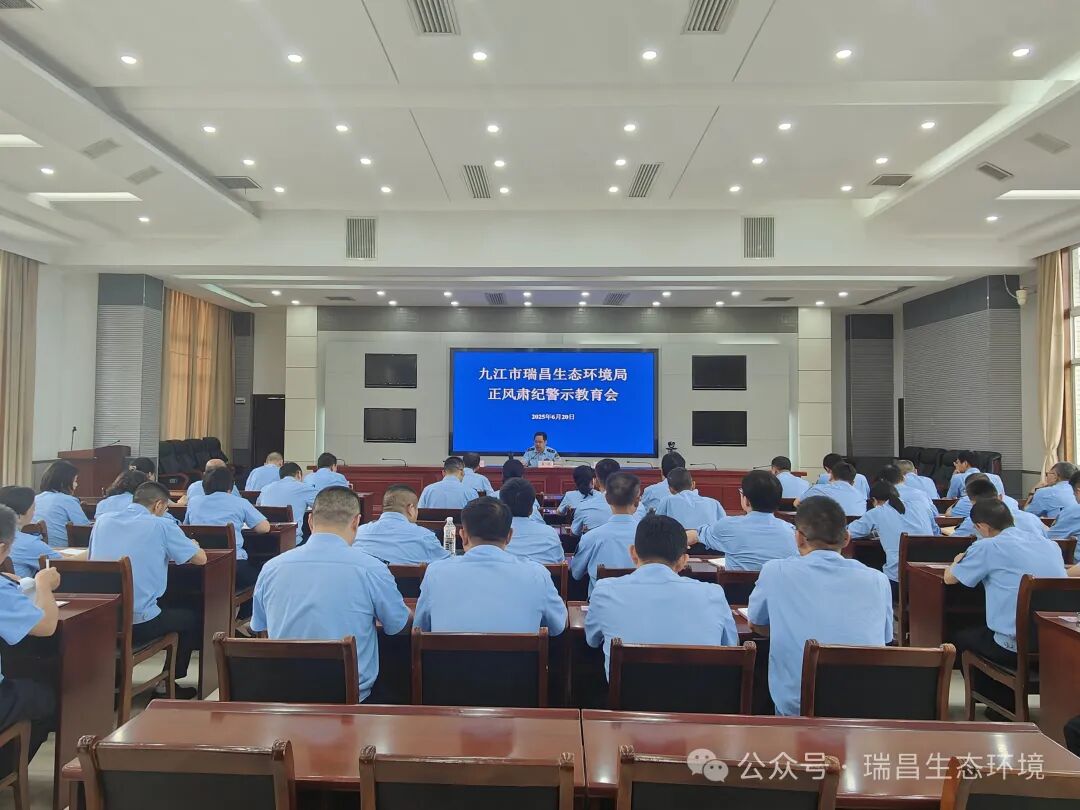 6月20日,瑞昌生态环境局召开正风肃纪警示教育会,深入贯彻习近平总书记关于加强党的作风建设的重要论述,认真落实中央八项规定精神,深化以案说德、以案说纪、以案说法、以案说责,纵深推进全面从严治党,为推动瑞昌生态环境保护事业高质量发展提供坚强保障。局党组书记、局长易波主持会议并讲话,全局干部职工参加会议。